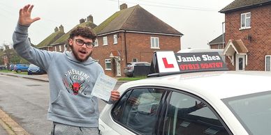Many thanks Jamie's driving school you have helped my daughter and son both pass first time with 0 and 3 minors.They really appreciated your help in achieving this as both were very nervous when they first started driving. They both found you very good at guiding them with your lessons leading up to their test many thanks again.